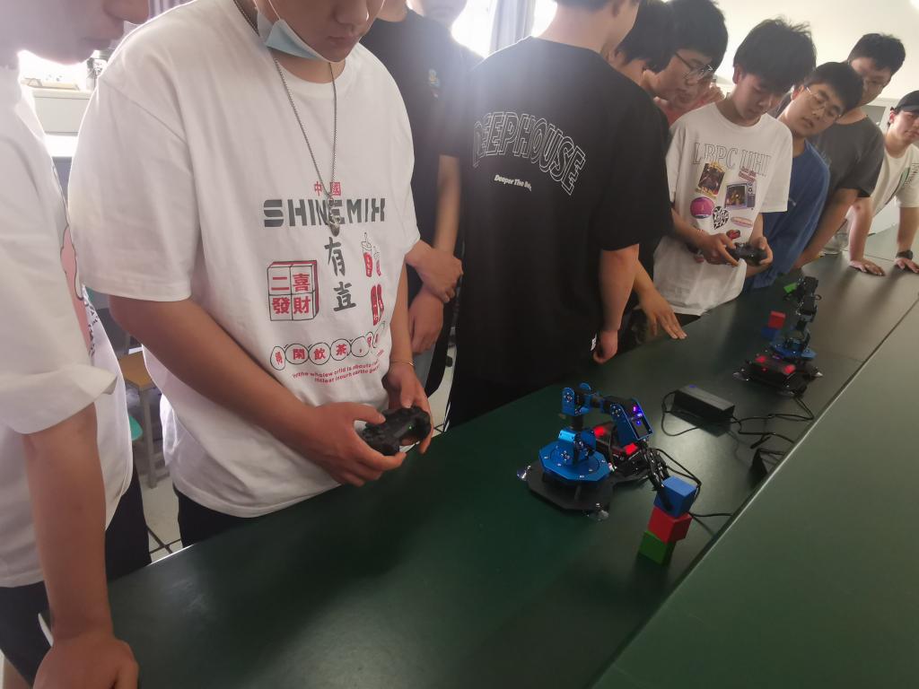 活动场所设置在实验楼S407实训室,智电学院电子自动化专业的同学分批参与了活动。现场通过宣讲、演示环节向同学们深入介绍了Xarm2.0系列智能机械手臂的组成、原理、控制策略、实际应用等知识。参与活动的同学通过双人对抗赛的形式,在现场进行交流互动。