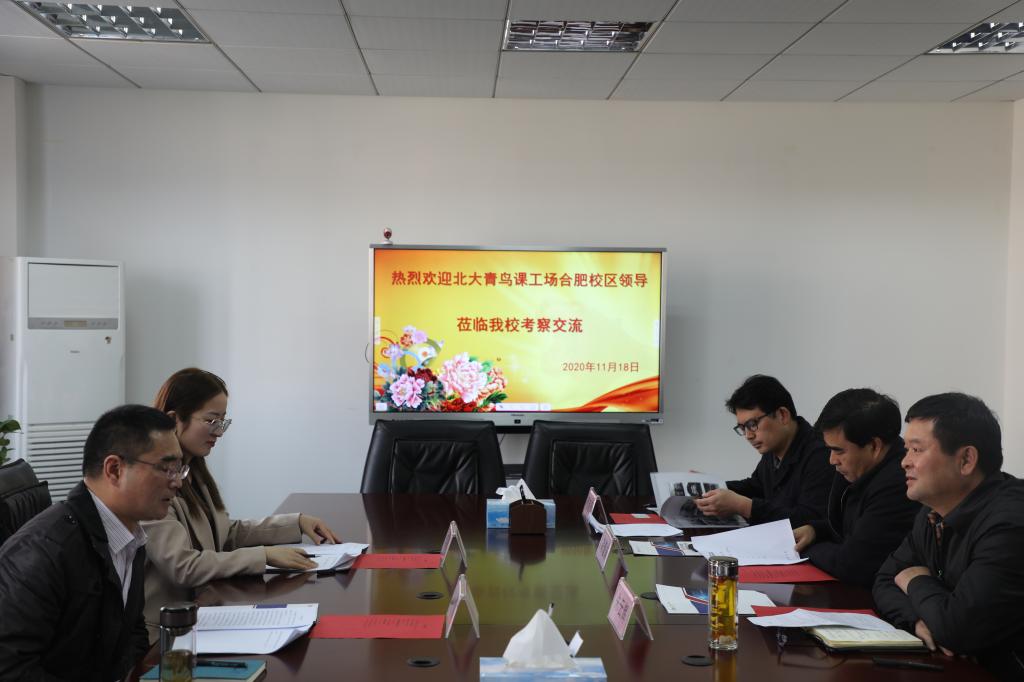 11月18日,北大青鸟课工场合肥校区校长蒋文斌一行到访我校,学校副校长朱云辉、招就办领导、智能与电气学院领导和教师代表参加了座谈活动。