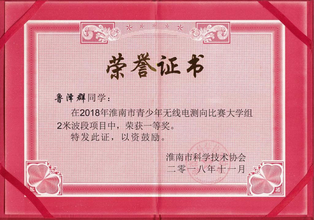 该同学平时勤奋刻苦,热爱钻研,并注重与同学们交流学习。在他的带动和影响下,班级学习气氛浓厚,为全系同学作出了表率。他本人综合成绩在班级排名第一,曾获国家励志奖学金、校优秀学生奖学金一等奖。2019年8月代表学校参加安徽省青年马克思主义者培养工程高校班,不断从学习中成长进步。此外,他还办理了图书馆借书证,积极利用图书馆资源,阅读其他学科的相关书籍、报刊、杂志,拓展自我的知识面,不断提高个人综合素质。在平时经常参加各类学术性比赛,获得第五届全国互联网+大学生创新创业大赛省赛铜奖、淮南市青少年无线电测向比赛大学组一等奖,以及校青年马克思主义者培养工程培训班优秀学员、校读书创作大赛二等奖等荣誉。