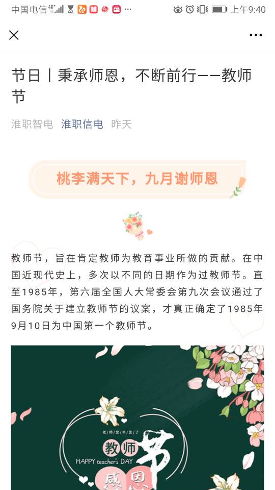 为迎接第 36个教师节,弘扬尊师重教传统,beat365在线体育官网登录入口团总支积极号召、组织广大同学开展教师节送祝福活动。