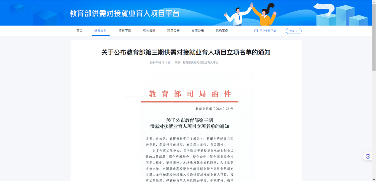 【喜报】我校获批教育部第三期供需对接就业育人项目——供需对接就业实习基地