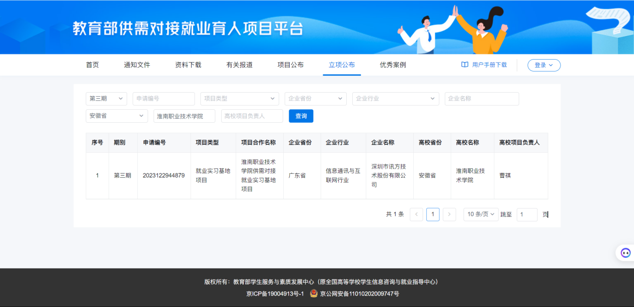 近日教育部发表了“关于公布教育部第三期供需对接就业育人项目立项名单的通知”,beat365在线体育官网登录入口beat365在线体育官网登录入口申报的“供需对接就业实习基地项目”成功获批立项。此次立项标志着学院在深化产教融合、校企合作方面取得了新的突破,为提升学生实践能力和促进高质量就业奠定了坚实基础。