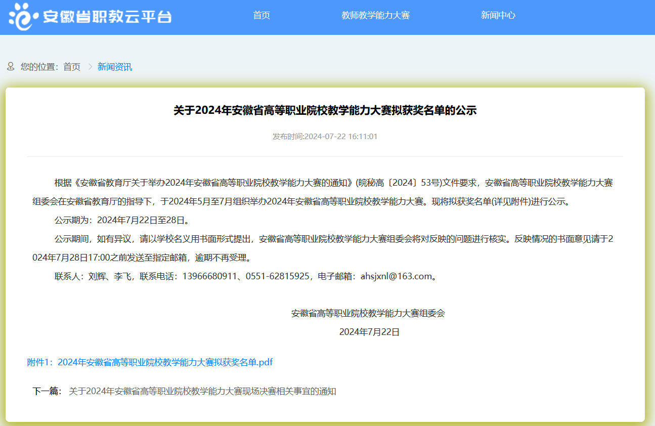 近日,安徽省高等职业院校教学能力大赛比赛圆满落幕,beat365在线体育官网登录入口高度重视此次比赛,精心组织,积极备赛,经过激烈角逐,beat365官网戚伟、桑冬青、陈猛、孙成兵团队以及刘杨斌、曹祺、马艳梅、刘东团队凭借出色的教学设计、精湛的教学技艺和默契的团队协作,分别荣获了高职专业课程一组和二组三等奖。这是学院在教学能力比赛中取得的最好成绩,充分展示了学院教师在教学领域的卓越能力和专业素养,不仅为学院赢得了荣誉,更为学院的教育教学改革和师资队伍建设注入了新的动力。