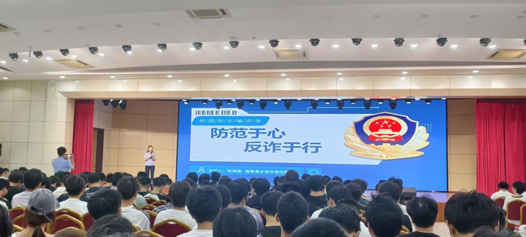 张警官围绕“什么是电信诈骗”“新形势下电信诈骗的演变”以及“常见诈骗手段防范措施”三方面内容,结合真实案例,以案析法、以案释法。通过通俗易懂、生动有趣的语言揭示了网络贷款诈骗、刷单返利诈骗、虚假理财诈骗、杀猪盘诈骗等常见的诈骗伎俩,并结合自身多年从警经验传授防骗“锦囊妙计”,为学生们上了一堂妙趣横生、别开生面的反诈防诈安全课。提醒学生牢记“未知链接不点击、陌生来电不轻信、个人信息不透露、转账汇款多核实”的原则,切实筑牢校园反诈“安全线”。讲座过程中,张警官也结合案例,深入浅出地讲解了毒品种类、危害及防范方法,告诫学生远离毒品,珍爱生命。