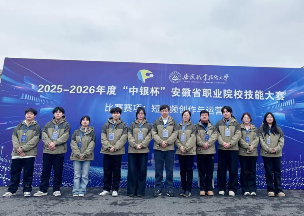 2025-2026年安徽省职业院校技能大赛高职组“短视频创作与运营”赛项于2026年1月30日至2月1日在安徽省合肥市举办。共有来自安徽省各职业院校的268名学生报名参赛。beat365在线体育官网登录入口方项、杨薇薇老师指导的学生刘子彦、吴博扬、毛欣怡、梅恩熙参赛,经过激烈角逐,最终,斩获二等奖一项。